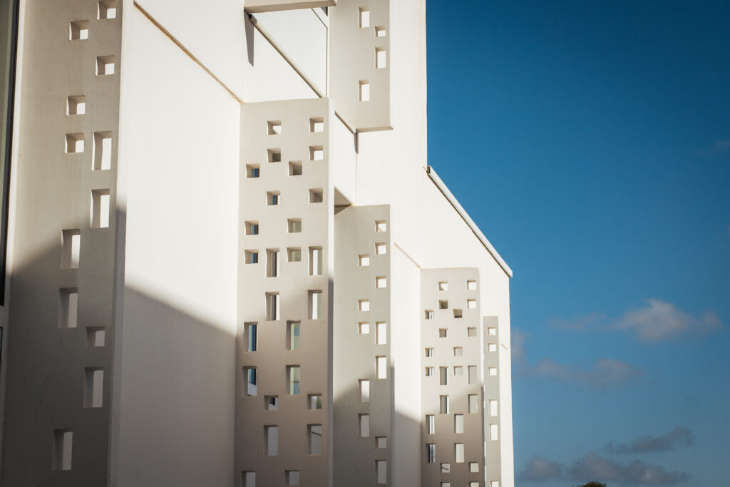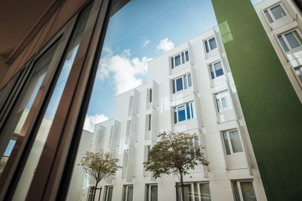 The building’s design includes multiple layers of insulation, solar fins for shading, and double-glazed, UV-resistant windows for enhanced insulation and soundproofing. These features, along with photovoltaic systems on the rooftops, reduce energy consumption and harness solar power. Additionally, rainwater is collected and reused through an irrigation storage system, supporting water conservation.